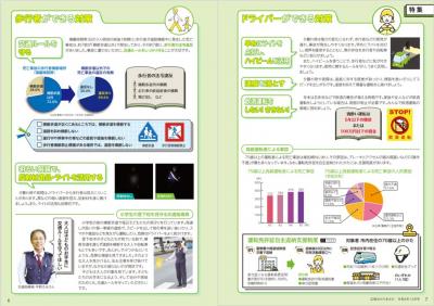 交通事故の特集は広報担当者が「やりたい」というより「やらなければならない」という企画だったと思います。イラストや写真、文章はともすると硬い内容になりがちなテーマですが、デザインを統一し、平易な文章で読みやすくまとまっています。事故を防ぐためのポイントを市民の心にとどめてもらいたいとの工夫を感じました。