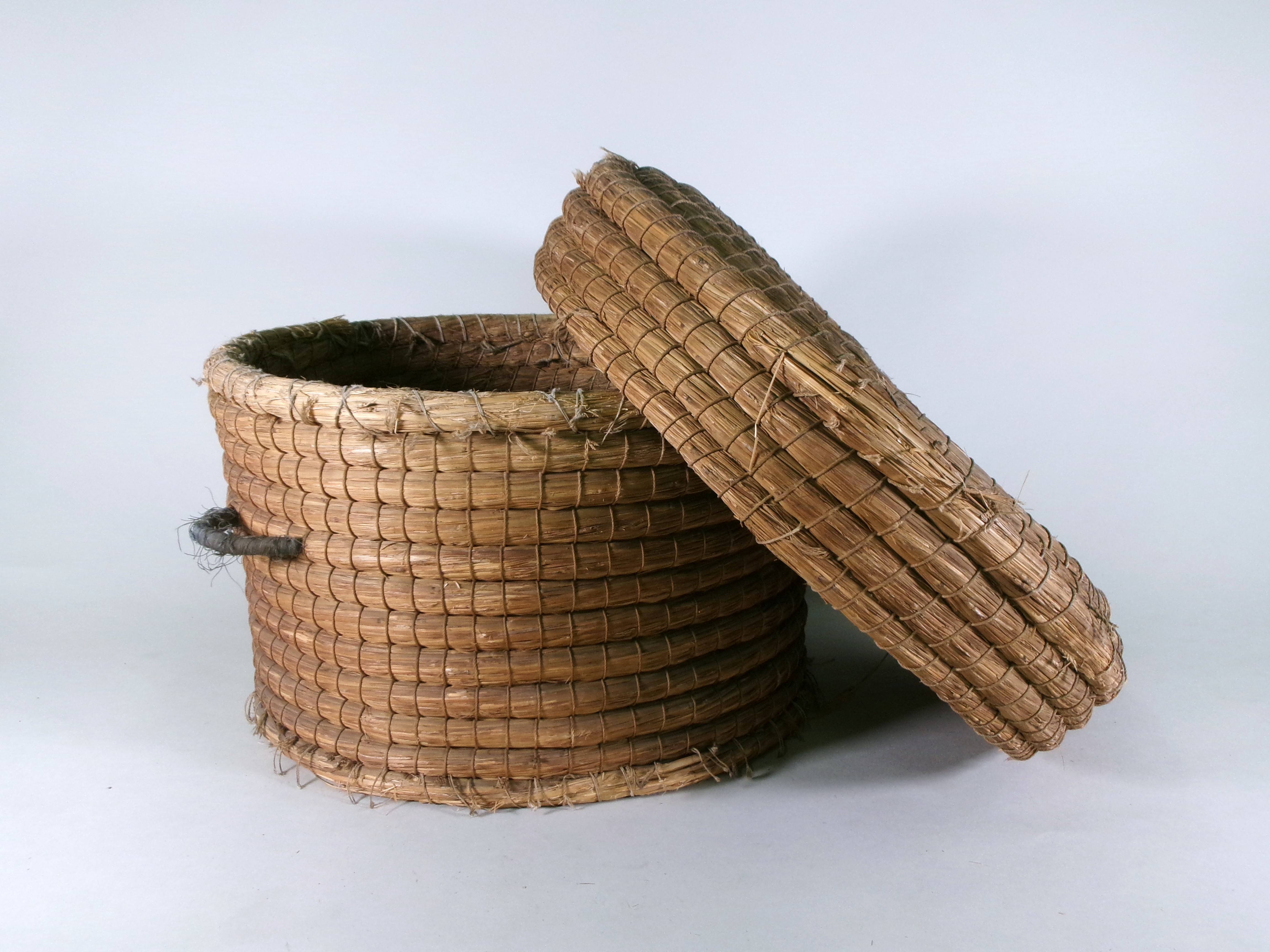 冬に、ご飯の保温のために使われた道具です。藁を編んで作られており、ご飯をいれた飯櫃をいれておくと、半日くらいは温かいままで保存することができました。