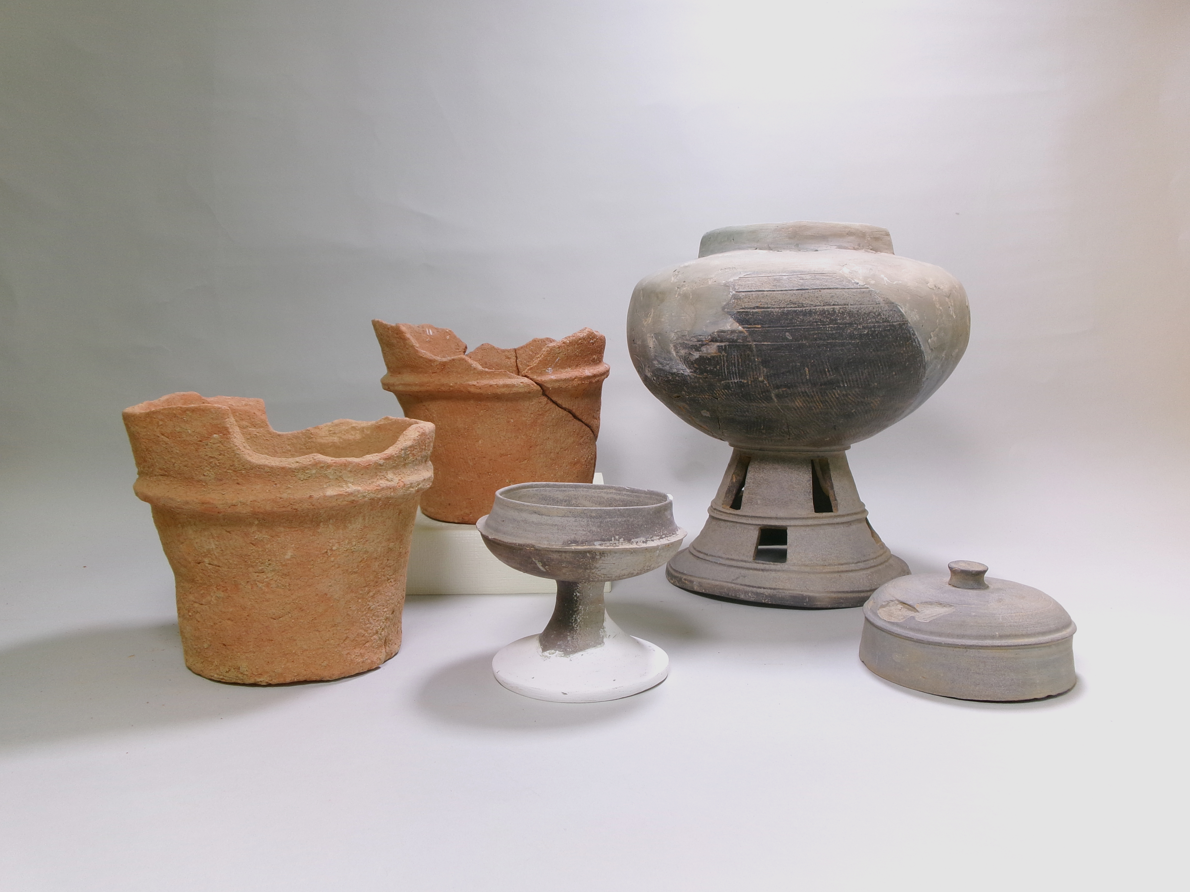 写真は埴輪、脚付壷、有蓋高坏、蓋です。
