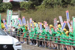 森林公園案内所前広場などで行われた「春の交通安全市民運動」に参加しました。交通少年団や地域安全推進協議会などの皆さんと一緒に、「横断歩行者保護」を呼び掛けました。