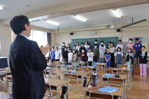今年の元日の能登半島地震があり、多くの方が亡くなられて今も困難な生活を送っている方がたくさんいる。尾張旭市は輪島市と災害協定を結んでいて、お互いに災害時は助け合いましょうと約束していた。国からの要請で水のタンク車や消防職員の派遣なども行うと同時に、独自の支援として寄付金を集めた。この小学校でも募金活動をしてくれて、感謝している。3カ月で集まった1,620万円と市からの100万円を、3月27日に輪島市長さんに直接目録としてお渡ししてきた。学校の募金活動は、子どもたちが提案してくれて実施されたと聞いている。自発的に手を挙げて困った人たちを助けようとしてくれたことに、感動した。輪島市長に渡すときは、とても誇らしい気持ちだった。そのような気持ちが市民の皆さんにある限り、尾張旭市は大丈夫ではないかと思う。また、この渋川小学校は、トンガ王国が火山被害を受けたときに積極的に募金活動をしてくれて、当時の4年生が主体となってメッセージを書いてくれた。皆さんの善意が垣間見えた。そのような街であることをとても嬉しく、誇らしく思う。