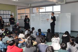 令和6年11月19日(火曜日)に訪問し、小学6年生(85名)と「ずっと住みたくなる尾張旭にするためには」というお題で意見交換を行いました。